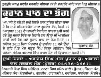 ਅੱਜਕਲ ਅਕਾਲੀ ਦਲ ਦੇ ਮੀਤ ਪ੍ਰਧਾਨ "ਕੁਰਾਨ ਪਾਠ" ਕਰਾਉਣ
