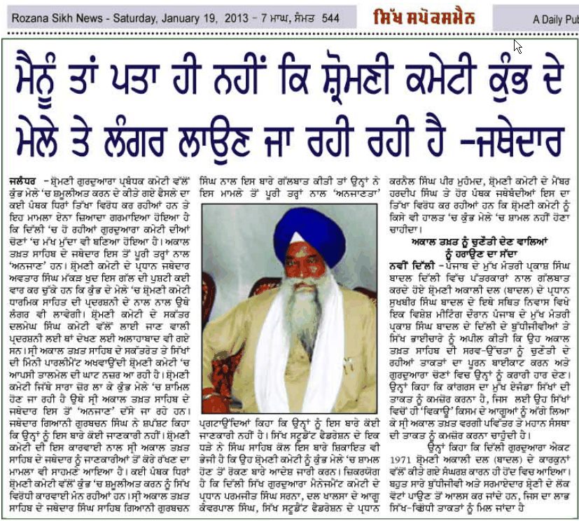 ਹੀ ਨਹੀਂ ਕਿ ਸ਼੍ਰੋਮਣੀ ਕਮੇਟੀ ਕੁੰਭ ਦੇ ਮੇਲੇ 'ਤੇ ਲੰਗਰ ਲਾਉਣ ਜਾ ਰਹੀ ਹੈ - ਗੁਰਬਚਨ ਸਿੰਘ