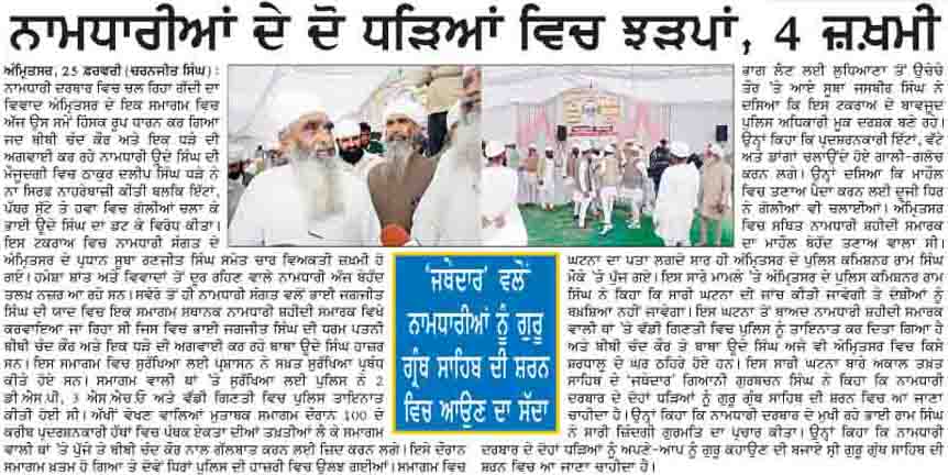 ਪ੍ਰਾਪਤ ਜਾਣਕਾਰੀ ਅਨੁਸਾਰ ਦੋ ਨਾਮਧਾਰੀ ਧੜਿਆਂ ਦਿਲੀਪ
