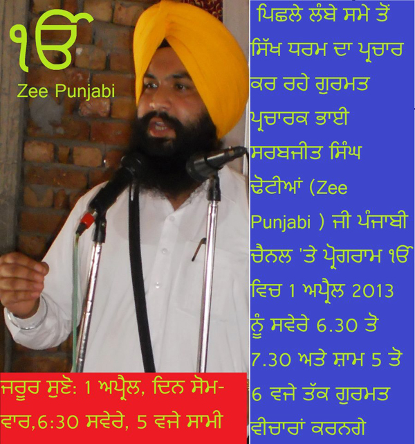 ਭਾਈ ਸਰਬਜੀਤ ਸਿੰਘ ਢੋਟੀਆਂ 01 ਅਪ੍ਰੈਲ ਨੂੰ ਜ਼ੀ ਪੰਜਾਬੀ 'ਤੇ