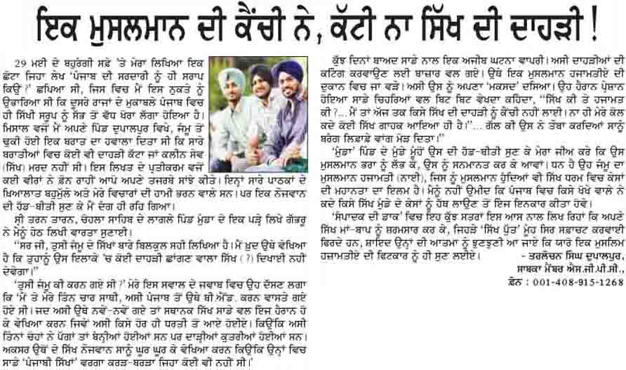 Disclaimer: Khalsanews.org does not necessarily endorse the views and opinions voiced in the news। articles। audios । videos or any other contents published on www.khalsanews.org and cannot be held responsible for their views. Read full details.... |