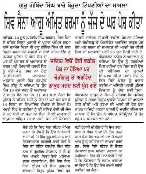 ਗੋਬਿੰਦ ਸਿੰਘ ਜੀ 'ਤੇ ਟਿੱਪਣੀ ਕਰਨ ਵਾਲੇ ਨੂੰ ਜੱਜ ਦੇ ਘਰ ਪੇਸ਼ ਕਰਕੇ