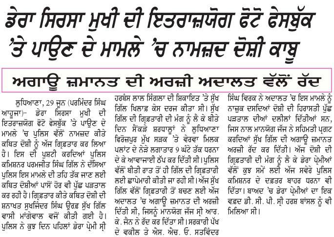 ਬਲਾਤਕਾਰੀ ਸਾਧ ਦੀ ਫੋਟੋ ਪਾਉਣ ਵਾਲੇ ਨੂੰ ਜ਼ਮਾਨਤ ਨਾ ਮਿਲੀ, ਪਰ ਗੁਰੂ