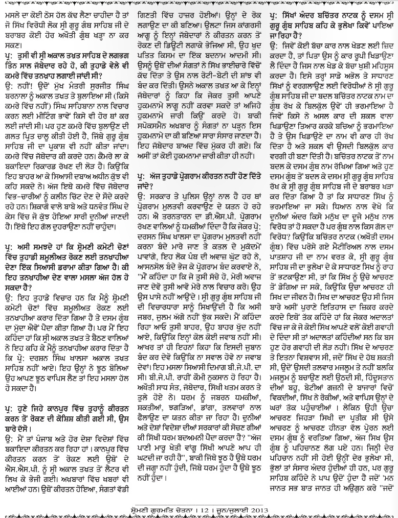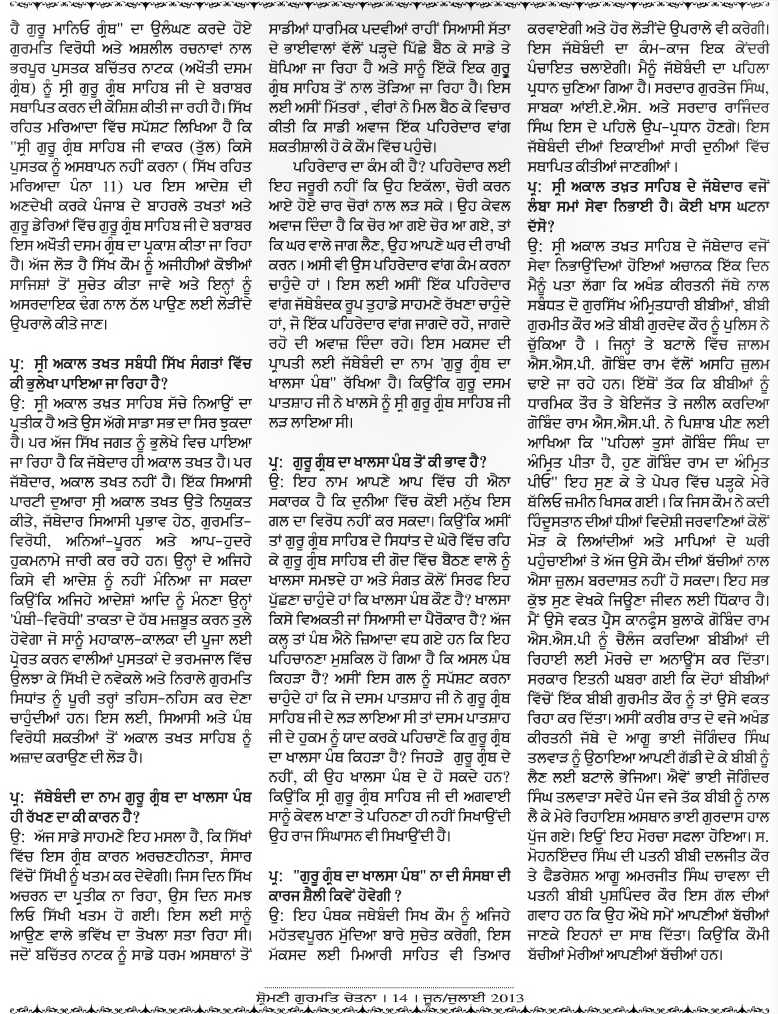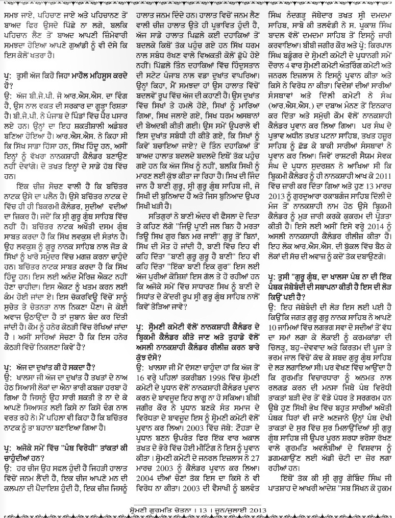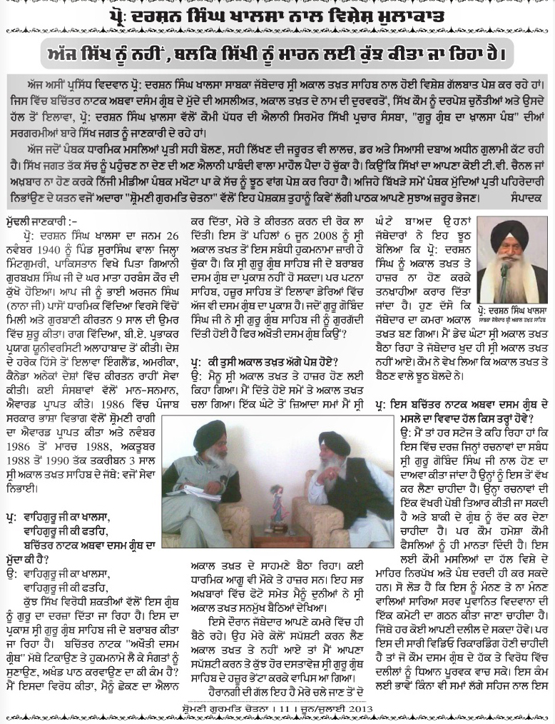 ਗੁਰਮਤਿ ਚੇਤਨਾ ਮੈਗਜ਼ੀਨ ਦੇ ਸੰਪਾਦਕ ਪ੍ਰਿੰ. ਪਰਵਿੰਦਰ ਸਿੰਘ ਖ਼ਾਲਸਾ ਵਲੋਂ ਲਈ ਗਈ ਇੰਟਰਵੀਊ