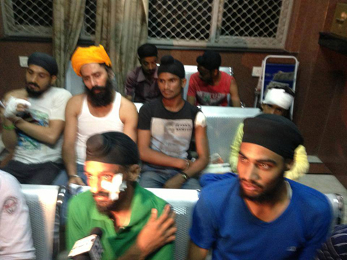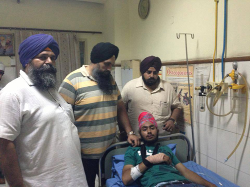 shot in his pelvic region, two sikhs got bullets in their hands, one