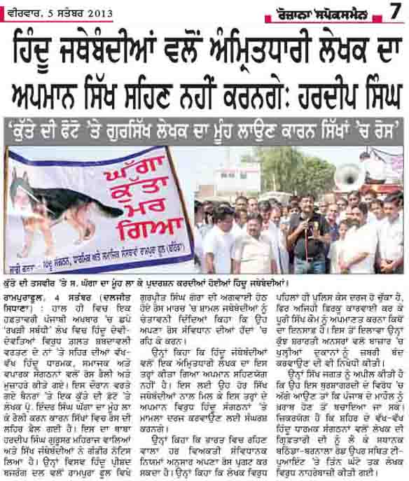 ਨੂੰ 295 ਹੇਠ ਜੇਲ 'ਚ ਹੀ ਡੱਕਿਆ ਰਹਿਣ ਦਿੱਤਾ ਜਾਵੇ। ਓ, ਭਲਿਓ, ਹਿੰਦੂ ਨੂੰ ਘੱਗਾ ਜਾਂ