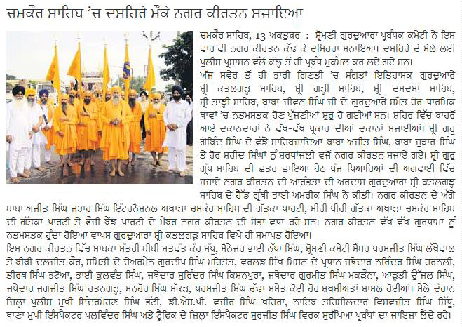 ਸ਼੍ਰੋਮਣੀ ਕਮੇਟੀ ਨੇ ਚਮਕੌਰ ਸਾਹਿਬ 'ਚ ਦੁਸਹਿਰੇ ਮੌਕੇ ਨਗਰ ਕੀਰਤਨ ਸਜਾਇਆ