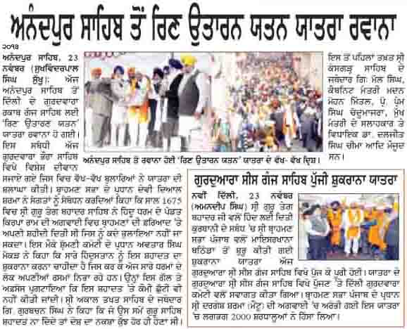ਸ਼ਹਾਦਤ ਦੇ ਅਹਸਾਨ ਦੀ ਅਹਮਿਯਤ ਨੂੰ ਘੱਟ ਕਰਨ ਵਾਸਤੇ ਇਕ "ਰਿਣ ਉਤਾਰ ਯਤਨ ਯਾਤਰਾ" ਕੱਢਦੇ