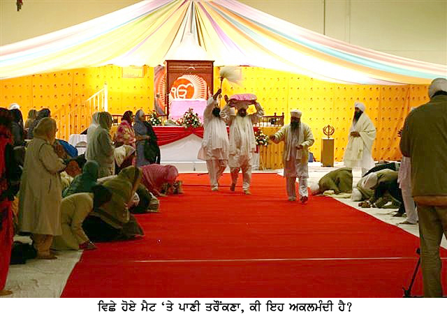 ਇਹ ਹੈ ਕਿ ਗੁਰੂ ਜੀ ਦਾ ਸਰੂਪ ਲੈਜਾਣ ਸਮੇਂ ਅੱਗੇ ਅੱਗੇ ਪਾਣੀਂ ਦਾ ਤਰੌਂਕਾ ਦੇਣਾਂ, ਕੀ ਗੁਰਮਤਿ