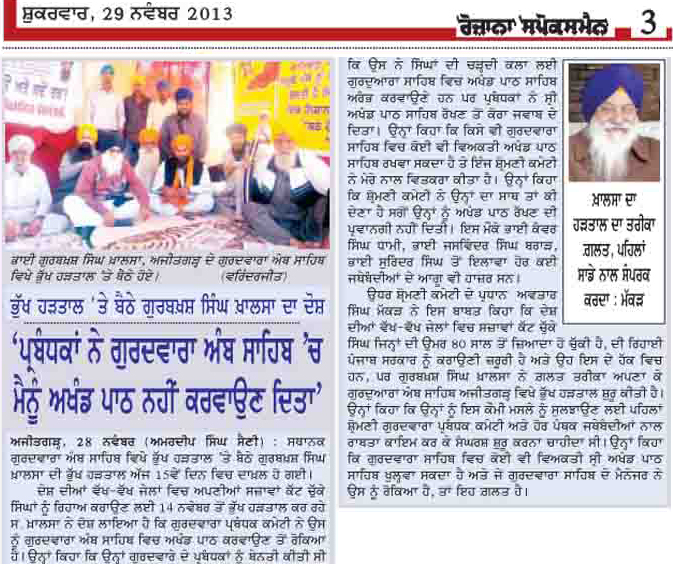 ਗੁਰਬਖ਼ਸ਼ ਸਿੰਘ ਖ਼ਾਲਸਾ ਦਾ ਹੜਤਾਲ ਦਾ ਤਰੀਕਾ ਗ਼ਲਤ, ਪਹਿਲਾਂ ਸਾਡੇ ਨਾਲ ਸੰਪਰਕ ਕਰਦਾ