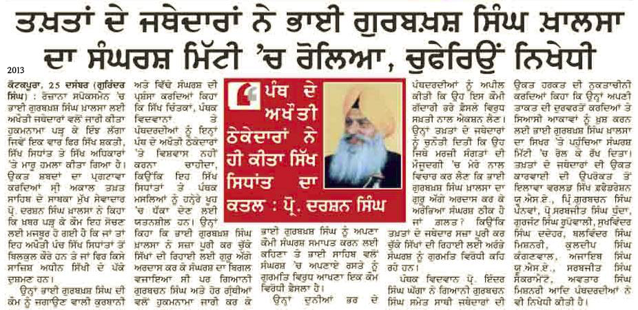 ਸਪੋਕਸਮੈਨ 'ਚ ਭਾਈ ਗੁਰਬਖਸ਼ ਸਿੰਘ ਖਾਲਸਾ ਲਈ ਛਪਿਆ ਅਖੌਤੀ ਜਥੇਦਾਰਾਂ ਵਲੋਂ