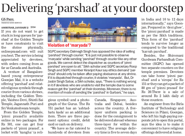 ਪ੍ਰਸ਼ਾਦ (ਦੇਗ) ਸਪਲਾਈ ਕਰਦੀ ਹੈ, ਅਤੇ ਕੰਪਨੀ ਲੋਕਾਂ ਨੂੰ ਕ੍ਰੇਡਿਟ ਕਾਰਡ ਰਾਹੀਂ ਪੈਸੇ