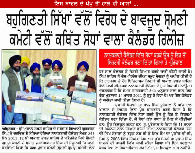 ਕਰਕੇ ਮੁੜ ਬਿਕ੍ਰਮੀ ਕੈਲੰਡਰ ਲਾਗੂ ਕਰਨ ਦੀ ਮੰਗ ਕਰ ਦਿੱਤੀ ਤਾਂ ਉਨ੍ਹਾਂ ਦੀ ਮੰਗ ਲਾਗੂ