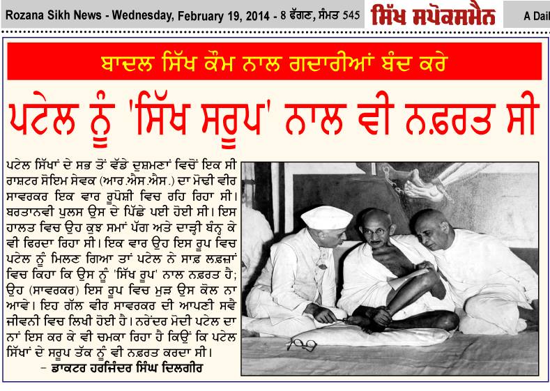 ਇਹ ਸੀ ਪਟੇਲ ਦਾ ਅਸਲੀ ਚਹਿਰਾ ਜਿਸ ਵਿਚ ੳਹ ਕਿਸੇ ਕੱਟੜ ਹਿੰਦੂ ਨੂੰ ਵੀ ਸਿੱਖੀ ਸਰੂਪ