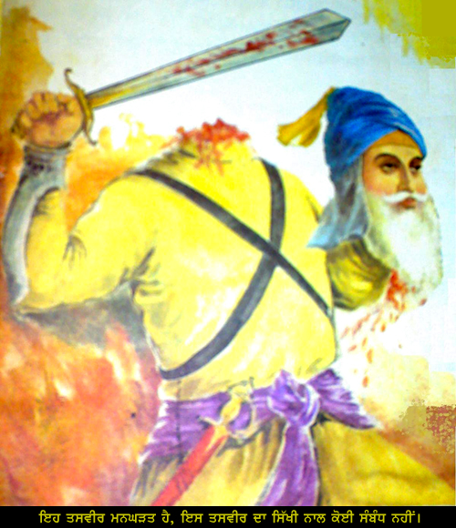 ਦੇ ਇਕ ਹੱਥ ਖੰਡਾ ਤੇ ਦੂਜੇ ਹੱਥ ਦੀ ਤਲੀ ਤੇ ਸੀਸ ਟਿਕਾ ਕੇ ਲੜਦੇ ਦਿਖਾ ਦਿੱਤਾ, ਜੋ ਸੱਚ