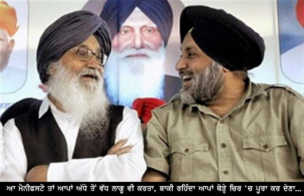 2014 ਦੀਆਂ ਚੋਣਾਂ ਵਿੱਚ ਕਾਲੀ ਦਲ ਦਾ ਸੰਭਾਵਿਤ ਮੈਨੀਫੇਸਟੋ