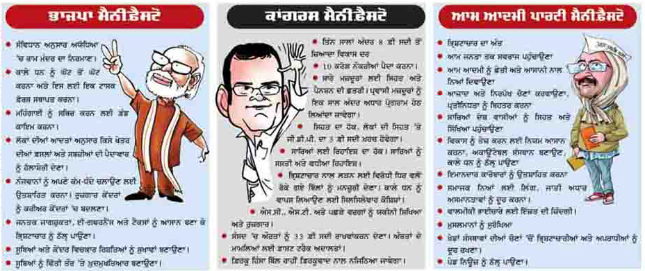 ਤਿੰਨ ਪ੍ਰਮੁੱਖ ਪਾਰਟੀਆਂ (ਬੀ. ਜੇ. ਪੀ., ਕਾਂਗਰਸ ਤੇ ਆਮ ਆਦਮੀ ਪਾਰਟੀ) ਵੱਲੋਂ ਜਾਰੀ