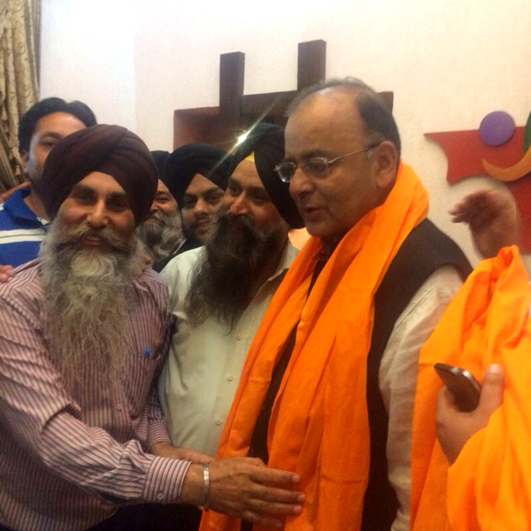 ਅਮਰਜੀਤ ਸਿੰਘ ਭਾਟੀਆ, ਅਰੁਣ ਜੇਤਲੀ ਨੂੰ ਸਿਰੋਪਾਓ ਭੇਂਟ ਕਰਦੇ ਹੋਏ