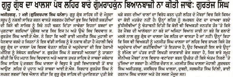 ਖ਼ਾਲਸਾ ਨਿਊਜ਼ ਸਿਰਫ ਸ੍ਰੀ ਗੁਰੂ ਗ੍ਰੰਥ ਸਾਹਿਬ ਨੂੰ ਸਮਰਪਿਤ