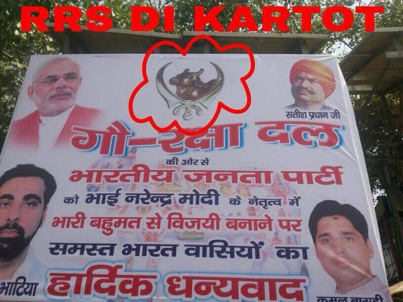 ਖੰਡੇ ਵਿਚ ਗਊ ਦੀ ਫੋਟੋ ਲਾ ਕੇ, ਗਊ ਰਕਸ਼ਾ ਦਲ ਨਾਮ ਦੀ ਹਿੰਦੂ ਜਥੇਬੰਦੀ ਵਲੋਂ ਖੰਡੇ ਦੀ ਬੇਅਦਬੀ ਇਹ ਤਾਂ ਹਾਲੇ ਸ਼ੁਰੁਆਤ ਹੈ, ਆਗੇ ਆਗੇ ਦੇਖਿਏ ਹੋਤਾ ਹੈ ਕਿਆ...
