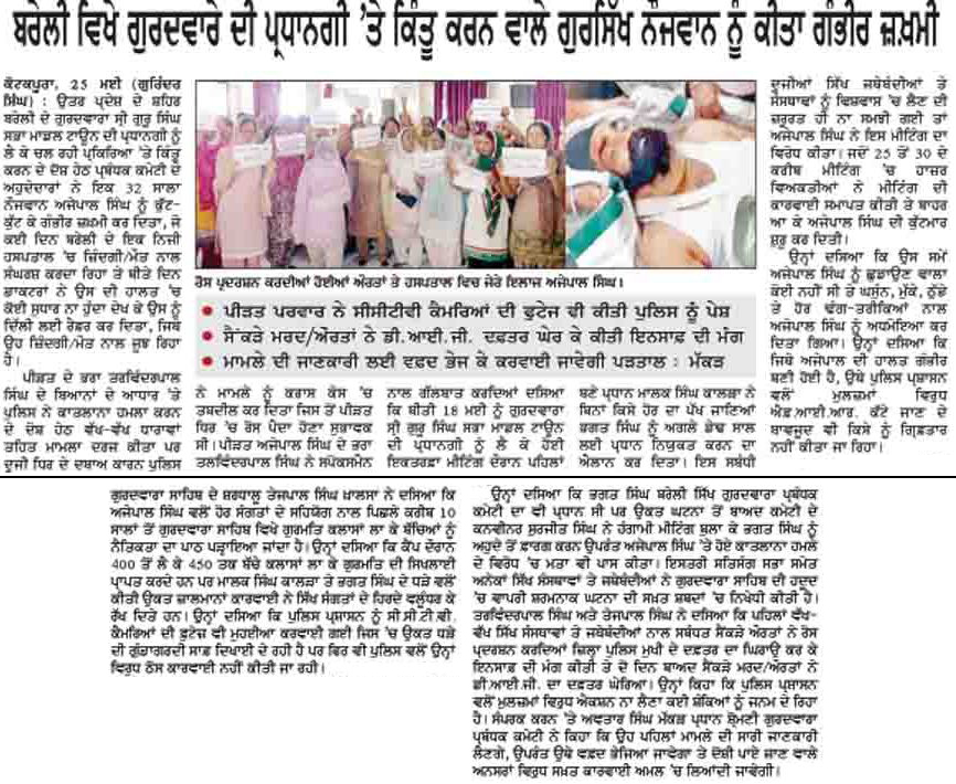 ਨੇ ਯੂ.ਪੀ. ਦੇ ਬਰੇਲੀ ਸ਼ਹਿਰ ਵਿਚ ਲਹਿਰ ਨਾਲ ਜੁੜੇ ਗੁਰਸਿੱਖ ਨੌਜਵਾਨ ਅਜੇਪਾਲ ਸਿੰਘ