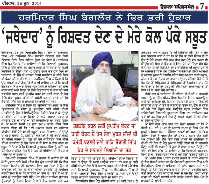 ਗੱਲ ਦਾ ਸਬੂਤ ਹੈ ਕਿ ਗਿਆਨੀ ਗੁਰਬਚਨ ਸਿੰਘ ਦੋਸ਼ੀਆਂ ਦੇ ਘਰ ਜਾ ਕੇ ਉਹਨਾਂ ਕੋਲੋ