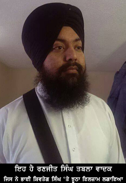 ਰਣਜੀਤ ਸਿੰਘ ਤੋਂ ਇਹ ਦੋਸ਼ ਲਵਾ ਦਿੱਤਾ ਕਿ ਭਾਈ ਸ਼ਿਵਤੇਗ ਸਿੰਘ ਨੂੰ ਉਸ ਨੇ ਢਾਢੀ ਜਥੇ ਦੀ