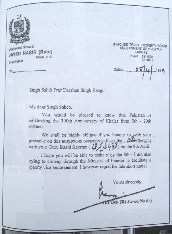ਕੇ ਇਸ ਸਮਾਗਮ ਵਿਚ ਸ਼ਾਮਲ ਹੋਣ ਦਾ ਸੱਦਾ ਆਇਆ। ਡੇਹਰਾ ਸਾਹਿਬ ਲਾਹੌਰ ਵਿਖੇ ਸਾਰੇ