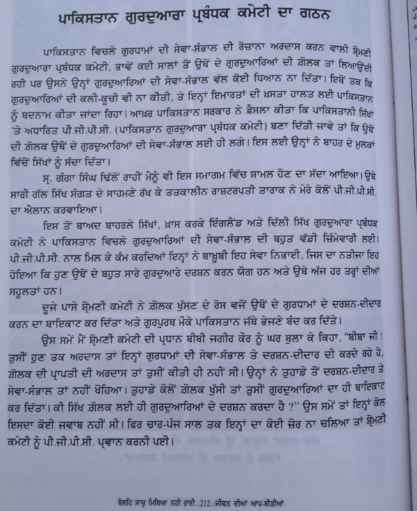 (ਪੰਨਾਂ ਨੰ: 213), ਐਸ.ਜੀ.ਪੀ.ਸੀ ਦੇ ਦੋਮੂਹੇ ਚਿਹਰੇ 'ਤੇ ਭੀ ਝਾਤ ਪੁਆਣਾ ਚਾਹੁੰਦਾ ਹਾਂ।