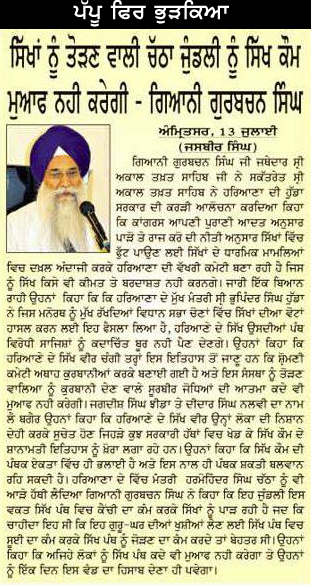 ਹੈ। ਵਫ਼ਦ ਦਾ ਕਹਿਣਾ ਸੀ ਕਿ ਹੁੱਡਾ ਸਰਕਾਰ ਨੇ ਸਿੱਖ ਕੌਮ ਦੇ ਧਾਰਮਕ ਮਾਮਲਿਆਂ ਵਿਚ ਸਿੱਧਾ