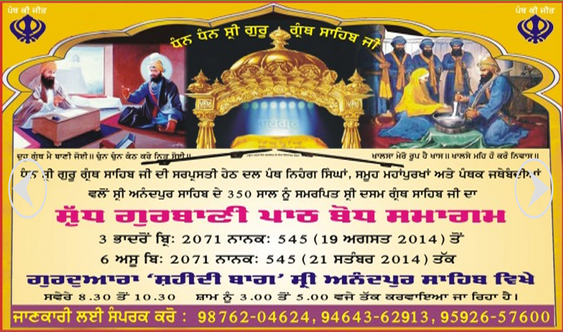 ਸਾਹਿਬ ਵਿਖੇ ਮਿਤੀ 19 ਅਗਸਤ ਤੋਂ 21 ਸਤੰਬਰ 2014 ਤਕ ਮਨਾਇਆ ਜਾ ਰਿਹਾ ਹੈ ਦੀ ਕਰੜੇ ਸ਼ਬਦਾਂ