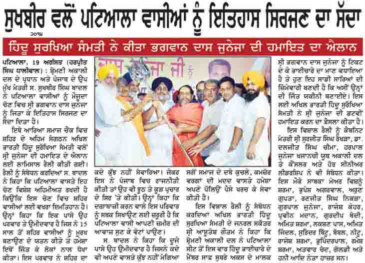 ਨੂੰ ਵੰਗਾਰਣ ਵਾਲੇ ਹਿੰਦੂ ਸੁੱਰਖਿਆ ਸਮਿਤੀ ਦੇ ਵੱਖਵਾਦੀਆਂ ਨਾਲ ਸੁਖਬੀਰ ਬਾਦਲ
