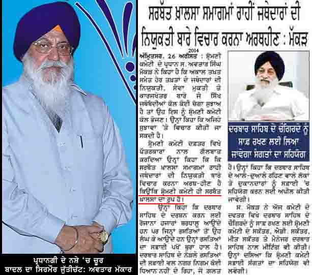 ਹੰਕਾਰੀ ਮੱਕੜ ਦਾ ਇੱਕ ਹੋਰ ਹੈਂਕੜ ਭਰਿਆ ਬਿਆਨ ਅਖੇ "ਸ਼੍ਰੋਮਣੀ ਕਮੇਟੀ ਹੀ ਸਰਬੱਤ ਖ਼ਾਲਸਾ ਦਾ ਰੂਪ ਹੈ"