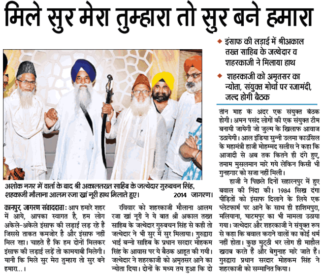 01 ਸਿਤੰਬਰ 2014 ਨੂੰ, ਅਕਾਲ ਤਖਤ ਦੇ ਹੈਡ ਗ੍ਰੰਥੀ ਗੁਰਬਚਨ ਸਿੰਘ ਦੀ ਕਾਨਪੁਰ ਫੇਰੀ ਦੇ