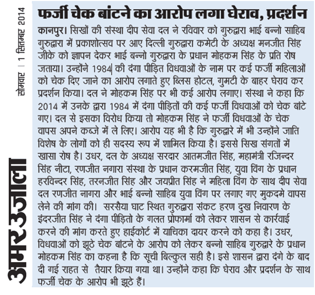 ਪ੍ਰਕਾਰ ਦੇ ਦੋਸ਼ ਵੀ ਲਾਏ। ਇਸ ਬਾਰੇ ਕਾਨਪੁਰ ਦੀ ਇਕ ਅਖਬਾਰ ਦੀ ਪੇਪਰ ਕਟਿੰਗ ਇਸ ਰਿਪੋਰਟ