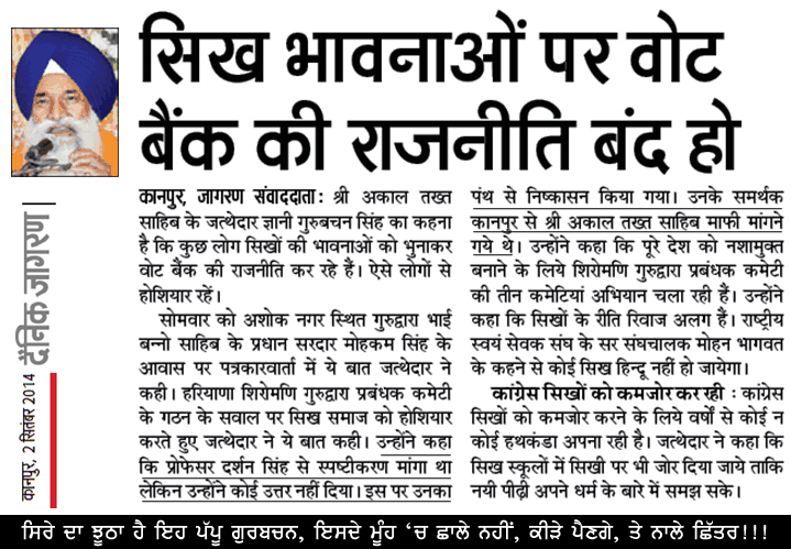ਕੇ, ਕਾਨਪੁਰ ਦੀ ਜਾਗਰੂਕ ਸਿੱਖ ਸੰਗਤ, ਇਸਨੂੰ ਗਾਲ੍ਹਾਂ ਕਡ੍ਹ ਰਹੀ ਹੈ (ਅਖਬਾਰ