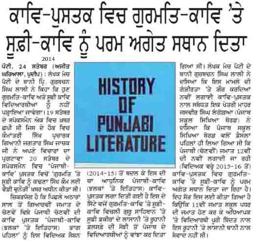 ਗੁਰਦਾਸ ਜੀ ਦੀ ਰਚਨਾ ਨੂੰ ਵਿਦਿਆਰਥੀਆਂ ਦੇ ਪੰਜਾਬੀ ਸਲੇਬਸ ਵਿੱਚੋਂ ਕਢਣ ਨਾਲ ਅਪਰਾਧ