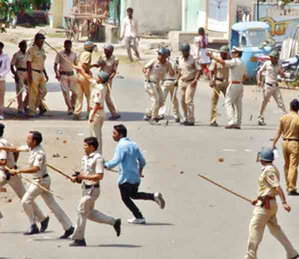 ਭੜਕੀ ਭੀੜ ਨੇ ਪੱਥਰ ਮਾਰਨ ਤੋਂ ਇਲਾਵਾ ਤੋੜ-ਭੰਨ ਕੀਤੀ, ਜਿਸ ਤੋਂ ਬਾਅਦ ਪੁਲਿਸ ਨੇ ਲਾਠੀਚਾਰਜ