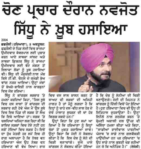 8 ਅਕਤੂਬਰ 2014- ਅੰਮ੍ਰਿਤਸਰ ਤੋਂ ਸਾਬਕਾ ਸੰਸਦ ਮੈਂਬਰ ਅਤੇ ਭਾਜਪਾ ਦੇ ਸਟਾਰ ਪ੍ਰਚਾਰਕ
