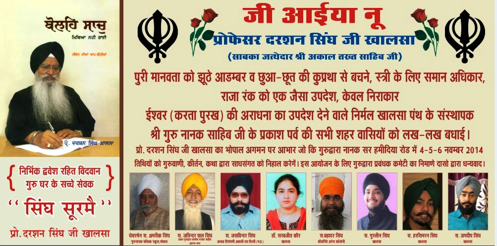 ਖਾਲਸਾ ਦਾ ਮਿਤੀ 4 ਨਵੰਬਰ ਨੂੰ ਭੋਪਾਲ ਪੁੱਜਣ 'ਤੇ ਭਰਵਾਂ ਸਵਾਗਤ ਕੀਤਾ। ਪ੍ਰੋ. ਸਾਹਿਬ ਜੀ ਦੀ ਕਾਰ ਦੇ