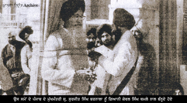 ਮੁੱਖ ਮੰਤਰੀ ਸੁਰਜੀਤ ਸਿੰਘ ਬਰਨਾਲਾ ਨੂੰ ਖੁੱਲੇ ਪੰਡਾਲ 'ਚ ਤਲਬ ਕੀਤਾ ਗਿਆ,