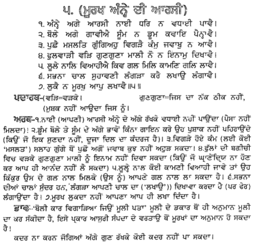 ਨੀਵਾਂ ਕਰਿ ਦੇਖੁ ॥" ਜਿਸ ਤਰ੍ਹਾਂ ਦਵਾਈ ਤਾਂ ਖਾਦੀ ਮੂੰਹ ਥਾਣੀ