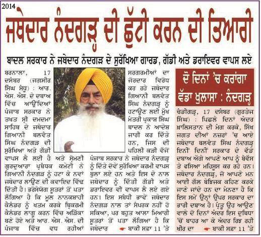 17 ਦਸੰਬਰ 2014: ਨਾਨਕਸ਼ਾਹੀ ਕੈਲੰਡਰ ਸਬੰਧੀ ਵਿਵਾਦ ਦੌਰਾਨ ਮੂਲ ਨਾਨਕਸ਼ਾਹੀ ਕੈਲੰਡਰ ਦਾ