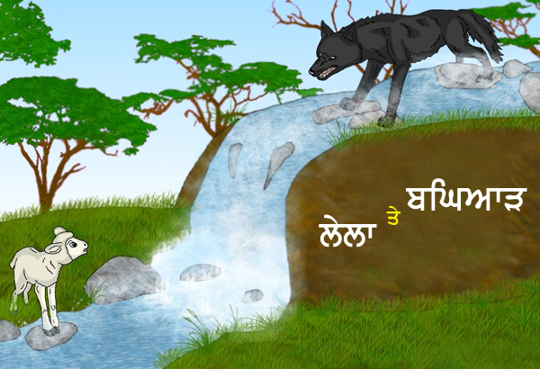 ਦੇ ਚੜ੍ਹਦੇ ਪਾਸੇ ਪਾਣੀ ਪੀਂਦੇ ਬਘਿਆੜ ਦੀ ਨਿਗਾਹ ਜਦ ਨਿਵਾਣ ਵਲ ਦੇ ਪਾਸੇ ਪਾਣੀ ਪੀ ਰਹੇ ਲੇਲੇ