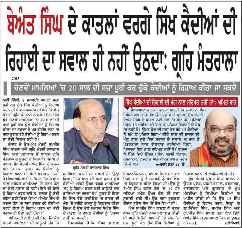 ਅਤੇ ਕਾਂਗਰਸੀ ਐਮ.ਪੀ. ਰਵਨੀਤ ਬਿੱਟੂ ਵੱਲੋਂ ਬੰਦੀ ਸਿੰਘਾਂ ਦੀ ਰਿਹਾਈ ਦਾ ਵਿਰੋਧ ਇਸੇ