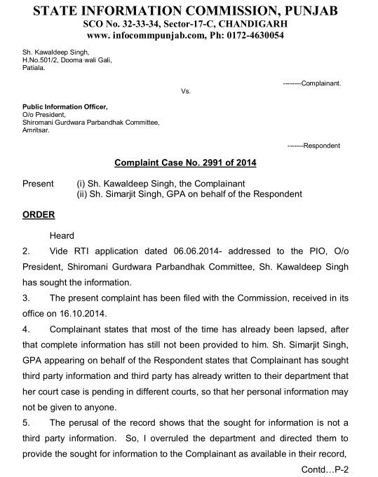 ਦੇ ਪੋਸਟਲ ਆਰਡਰ ਨੂੰ ਨਾਲ ਨੱਥੀ ਕਰਕੇ ਸ਼੍ਰੋਮਣੀ ਗੁਰਦੁਆਰਾ ਪ੍ਰਬੰਧਕ ਕਮੇਟੀ ਤੋਂ ਆਰ.ਟੀ.ਆਈ
