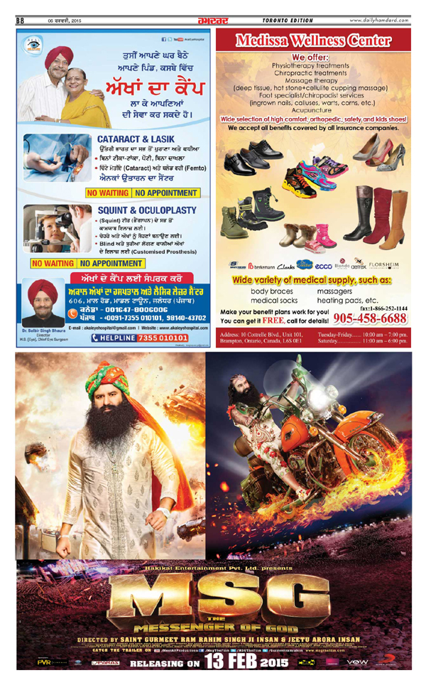 ਪੰਜਾਬੀ ਅਖ਼ਬਾਰਾਂ ਹਮਦਰਦ (6 ਫਰਵਰੀ, 2015) ਅਤੇ
