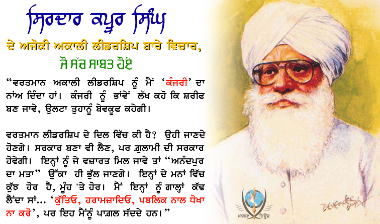 ਸ. ਕਪੂਰ ਸਿੰਘ ਦੀ ਪੰਥ ਪ੍ਰਸਤੀ ਅਤੇ ਦਲੇਰੀ ਦੀ ਦਾਸਤਾਨ ਬਹੁਤ ਲੰਬੇਰੀ