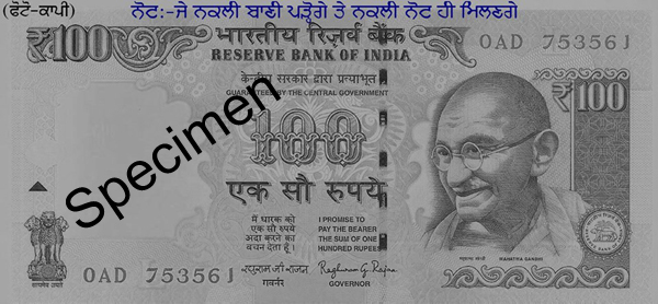 100/- ਦੇ ਨੋਟ ਦੀ ਫੋਟੋ ਕਾਪੀ ਕਰਾ ਕੇ, ਉਪਰ ਨੋਟ ਲਿਖ ਕੇ ਦੇਣਾ ਚਾਹੀਦਾ ਕਿ "ਜੇ