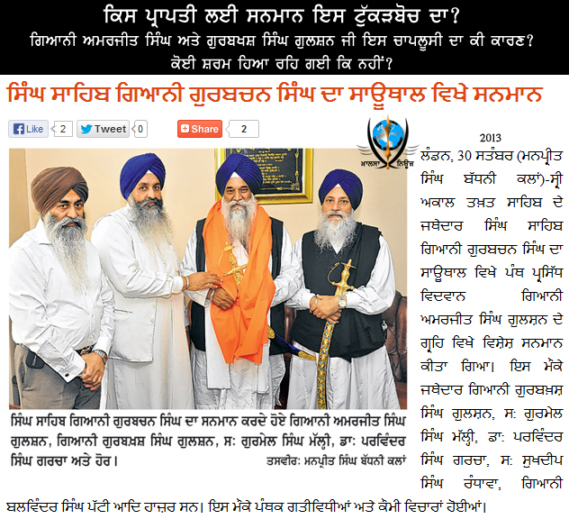 ਗੋਲਕ ਲੁੱਟ ਕਮੇਟੀ ਵਲੋਂ "ਸਫ਼ਲ ਪ੍ਰਚਾਰਕ"